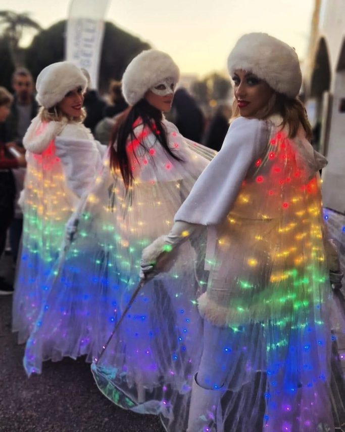 Échassières lumineuses à LED, robots LED, manipulatrices de feu, DJ, musiciens, soirées mousse, performances visuelles et animations immersives : chaque événement est pensé pour créer une ambiance dynamique, spectaculaire et fédératrice.